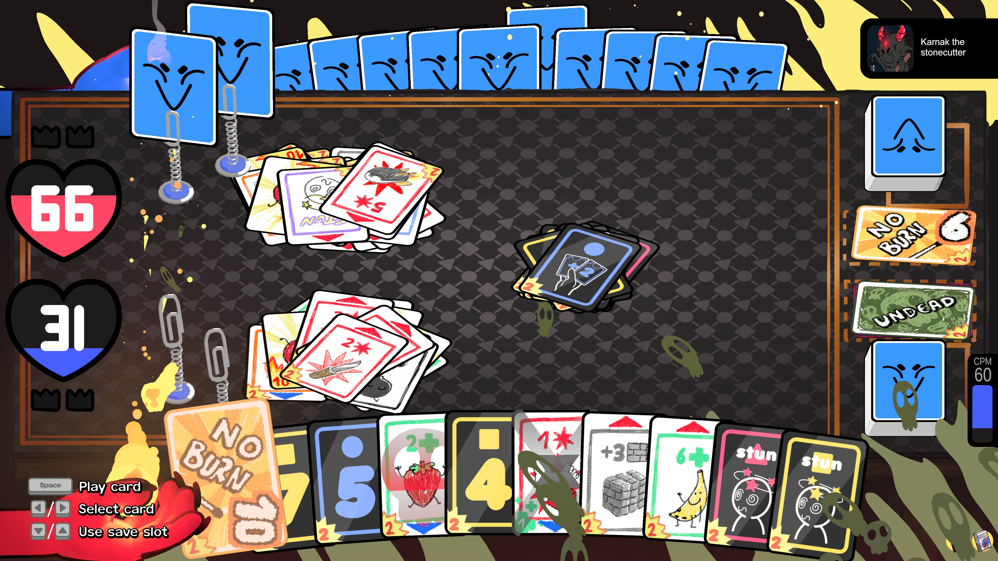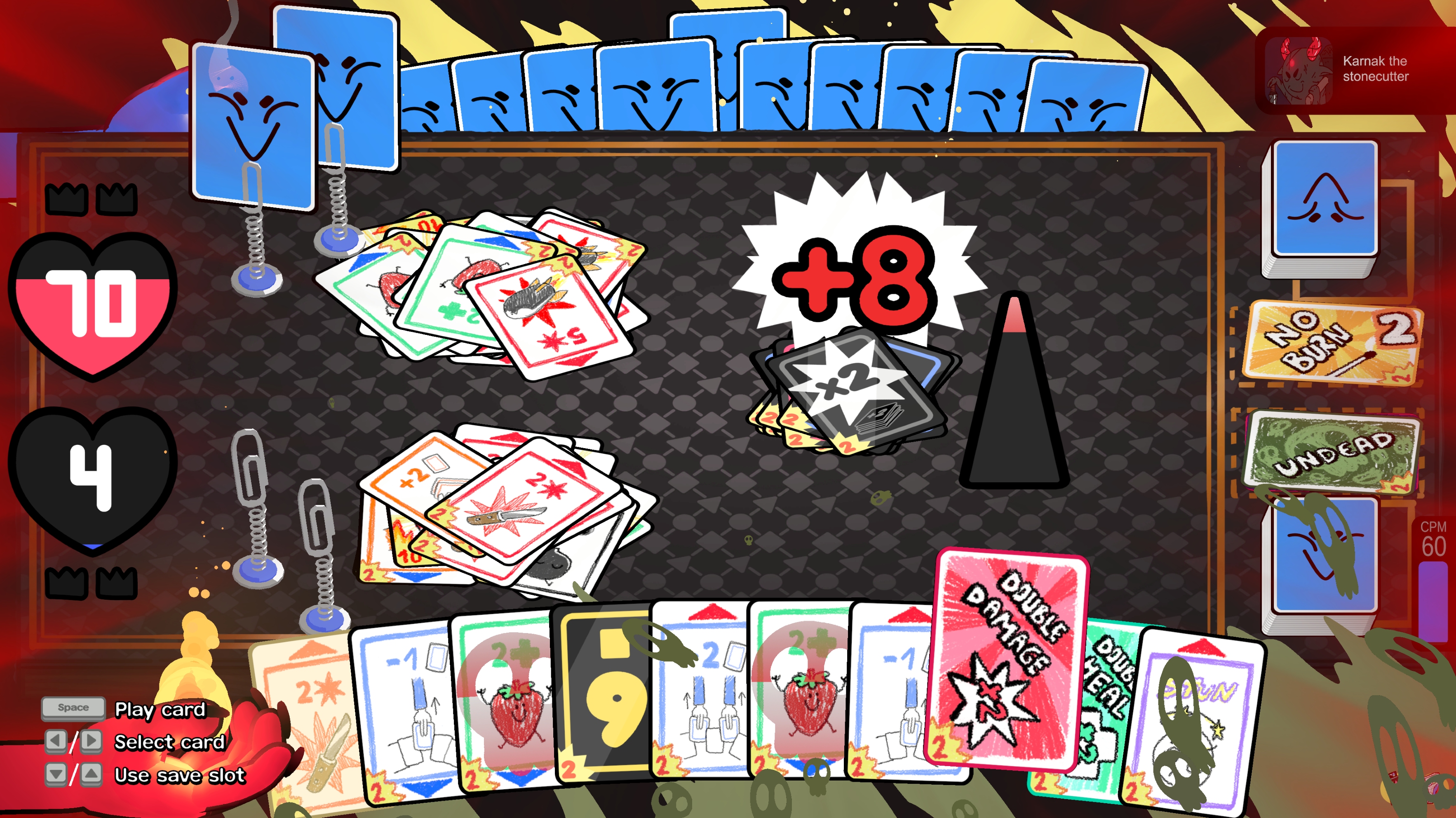 Cards keep piling up in your hand so you'll have to analyze quickly and play your cards wisely before your hand is full.